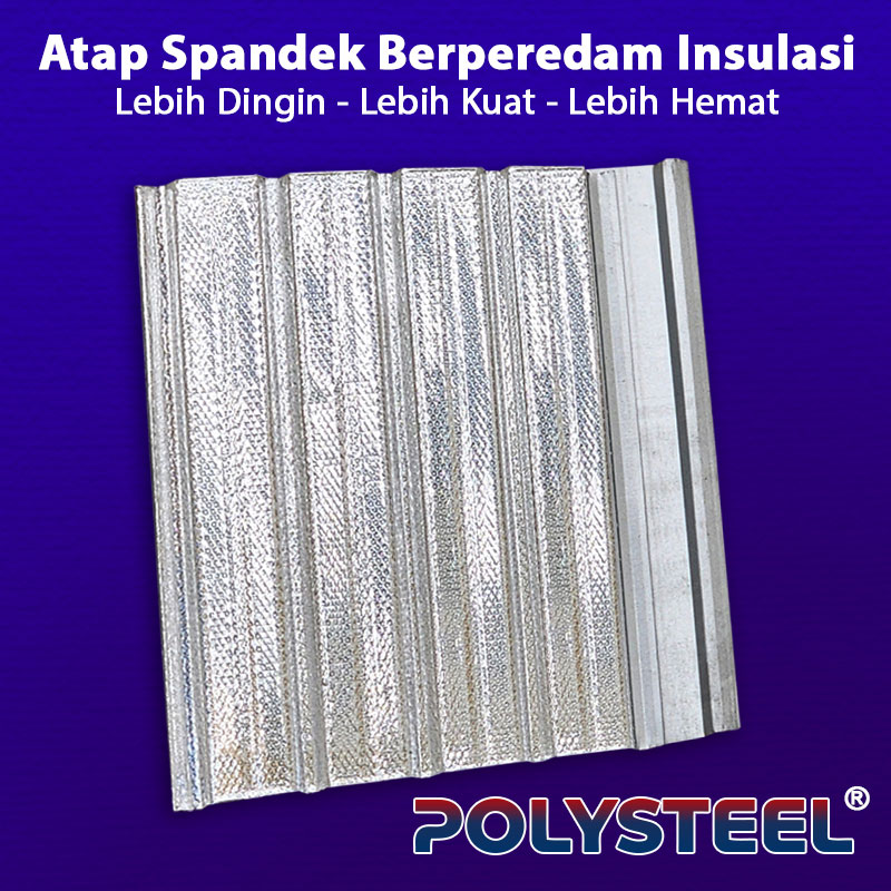 Atap POLYSTEEL merupakan innovasi atap baja ringan (spandek galvalum) berlapis peredam insulasi bubble foil.